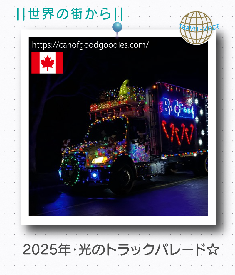 カナダ・ヴィクトリア在住のpapricaさんブログ「Can of Good Goodies」​2025年12月07日の記事より『2025年・光のトラックパレード⭐︎』をお送りします。イルミネーションで装飾されたトラックのパレードは、ヴィクトリアのクリスマスシーズンの風物詩となっていて、市民や愛好家たちが毎年楽しみにしているイベントだそうですよ!ぜひpapricaさんのyoutubeでもご覧ください。
