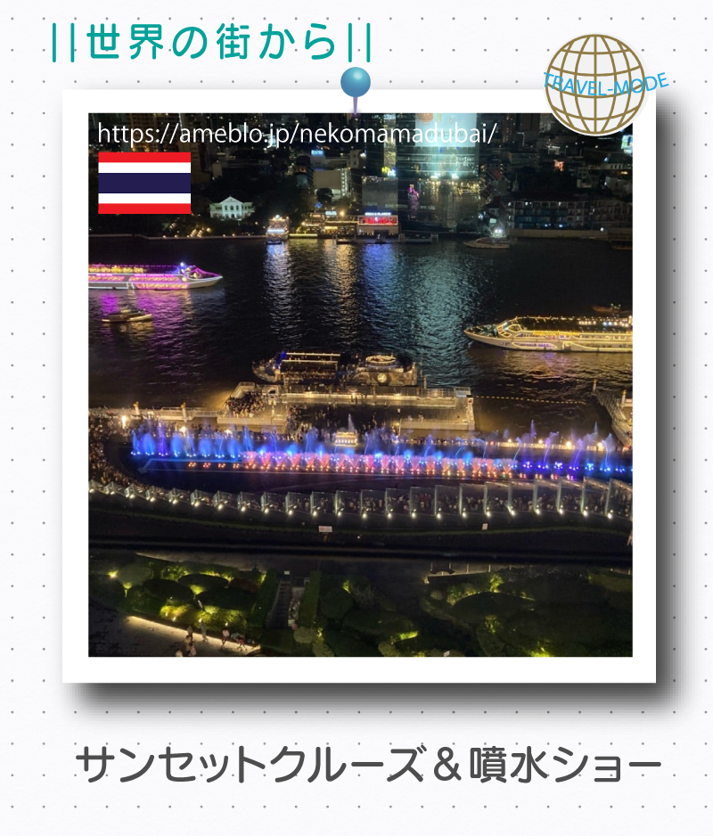 バンコク在住のnekomamaさんのブログ「猫と暮らす in タイランド(旧ドバイ)」から2025.12.08の記事をお伝えいたします。年末年始は海外旅行に行けなくても、今回のnekomamaさんの記事で、チャオプラヤ川からバンコクのランドマークと美しいサンセットの風景をたっぷりご覧いただけます!イルミネーション煌めく街並みも綺麗です。